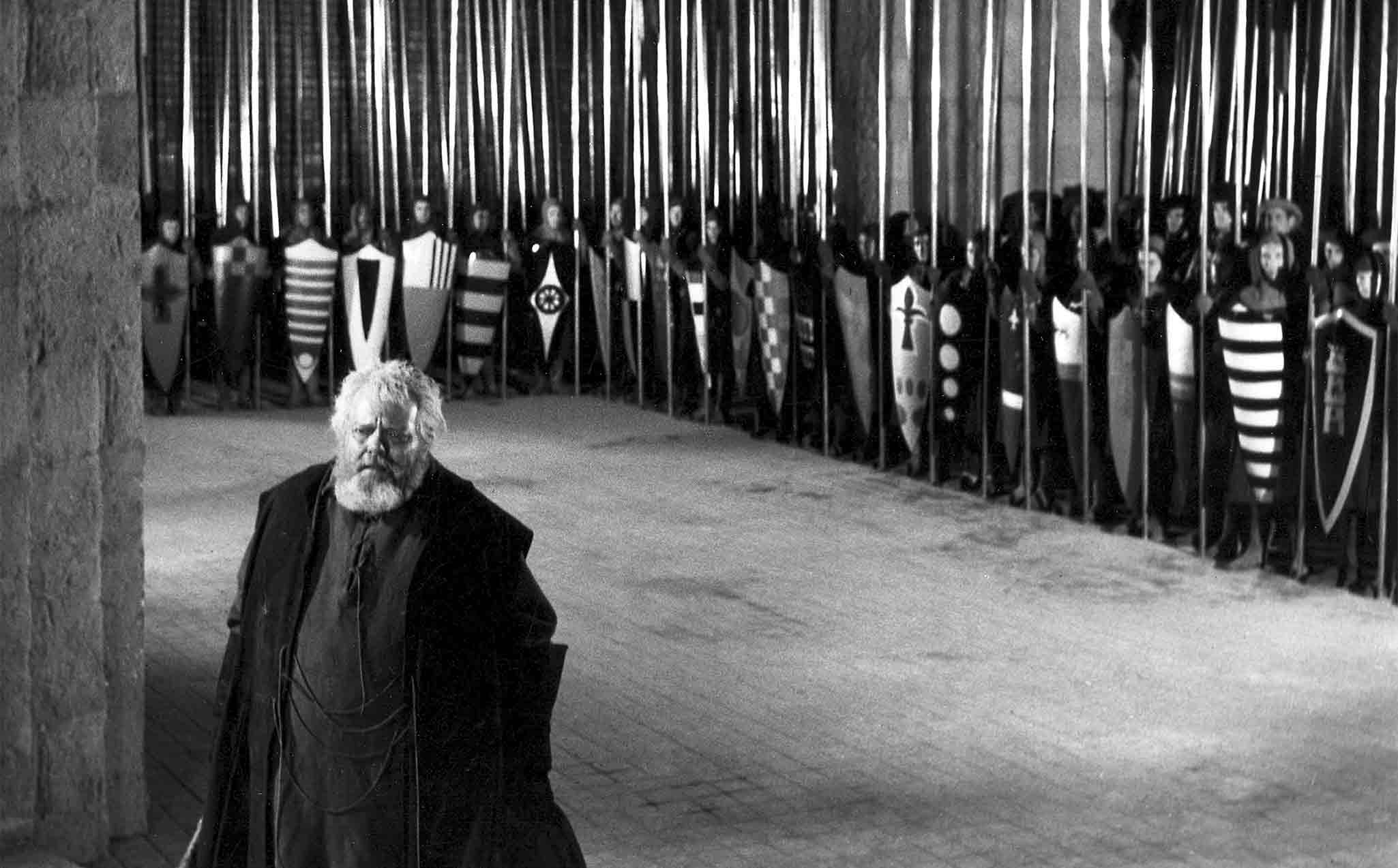 Like Welles’s film of Don Quixote, another project never completed in his lifetime, Chimes at Midnight reflects the director’s proclivity for out-of-step dreamers who prefer their lovely, useless fancies to cold, pragmatic practicalities. Welles’s Falstaff played on the public perception of the genius of Citizen Kane (1941) as a prodigy who had squandered his gifts and advantages. Living with the character may also have been a way for Welles to get closer to the ghost of his father, Richard Head Welles, who had made a fortune by inventing a bicycle lamp, then drank it all up and died young. Rather than establishing proprietorship, these deeply felt personal touches open up the material, make it into Everybody’s Shakespeare. Welles’s Sir John Falstaff is a splendid fraud, the outrageous liar at the VFW hall whose history becomes more heroic with every downed boilermaker, or the lecherous lifelong hanger-on who has somehow sustained himself in a state of nonstop carnival; Baxter’s Hal every rich boy who passes a season in bohemia before answering the prerogatives of class duty. It gives us Shakespeare as a spree, complete with its Saturday night and Sunday morning comedown.